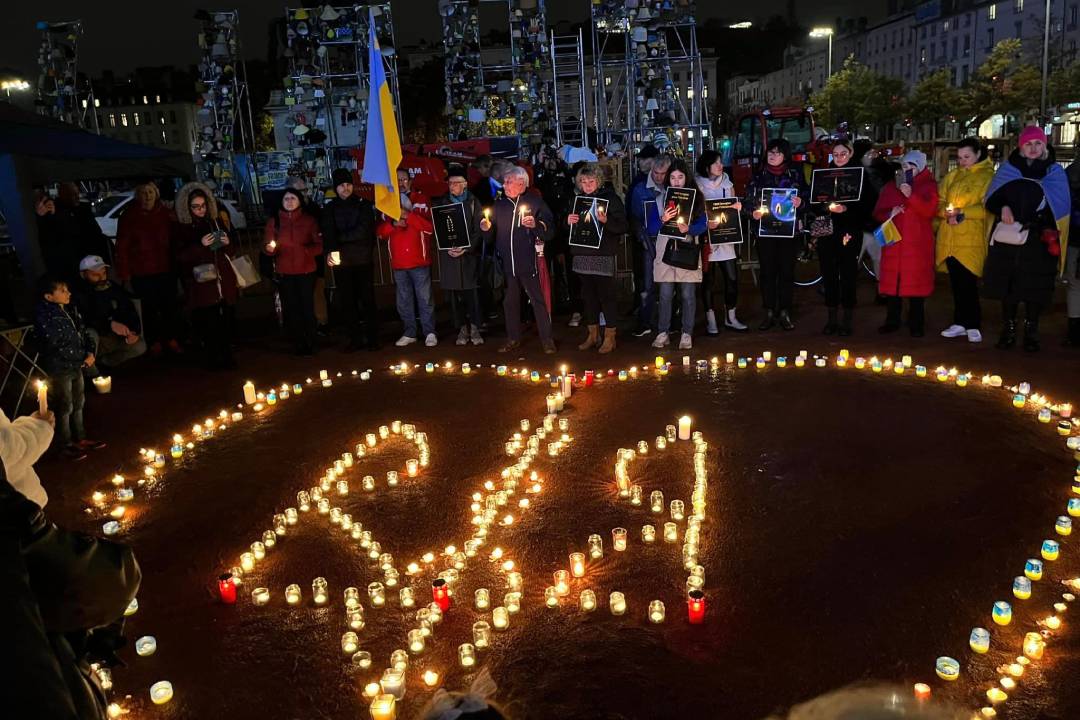 “1000 candles for Ukraine” and “For the victory of light over darkness, let’s all support Ukrainians.” A rally under these slogans was held in Lyon, France on Sunday, to support Ukraine and honor the fallen Ukrainians defending themselves from Russia’s invasion and war of aggression.