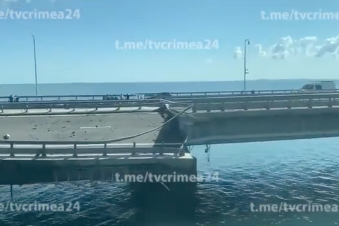 The released footage shows that the Crimean Bridge has partially collapsed. Due to the explosion, two people from the Belgorod region were killed in the car. A married couple died, and their 14-year-old daughter was injured and is now in hospital.