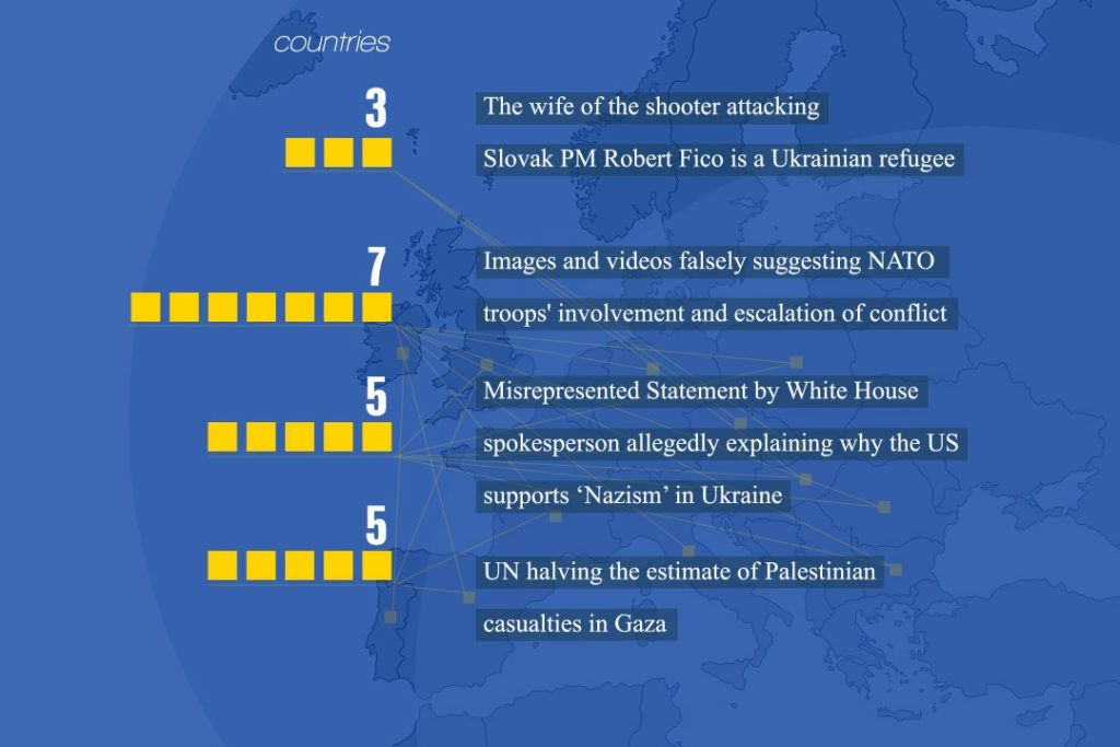 Narratives: Despite a slight decrease in volume compared to previous months, disinformation about Ukraine persisted. False stories included claims of NATO troops’ direct involvement in Ukraine and exaggerated Russian threats to EU security.