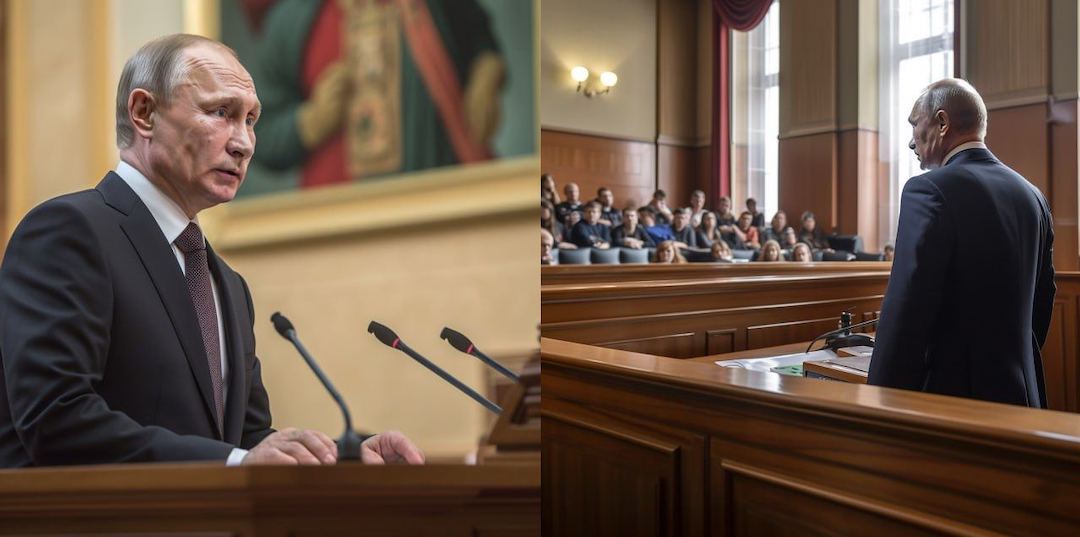 Photo: Putin’s hypothetical scene in The Hague (generated by a neural network).