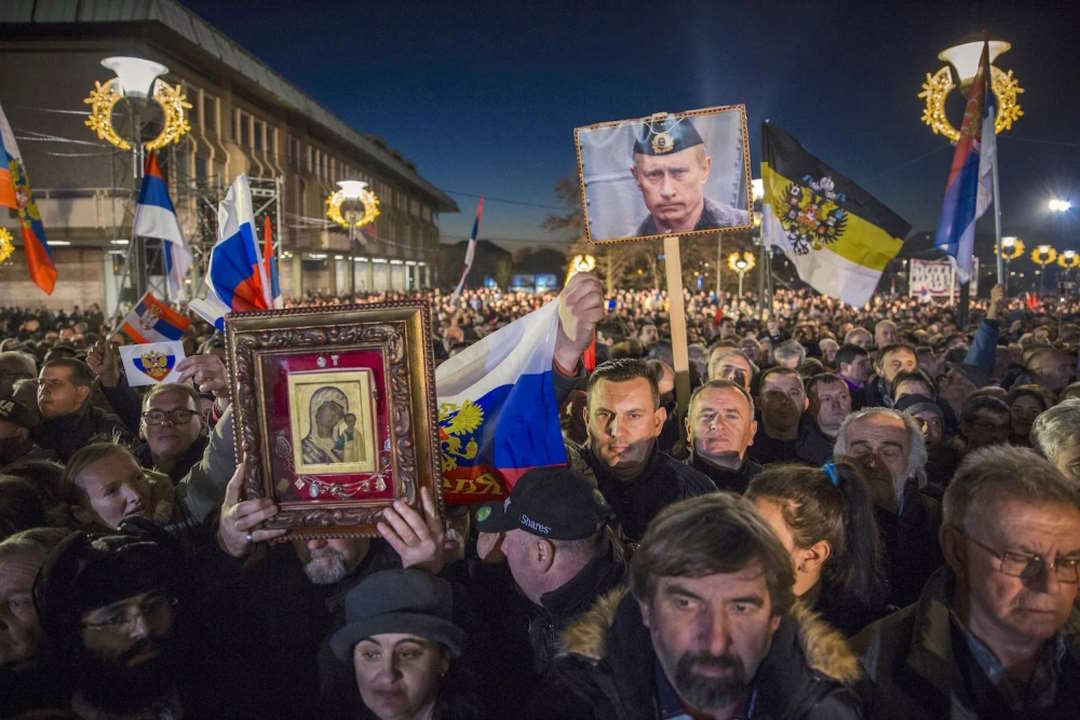 Photo: Supporters of Russian President Vladimir Putin wait for his arrival in front of Belgrade’s Saint Sava Church on January 17, 2019, Foreign Policy