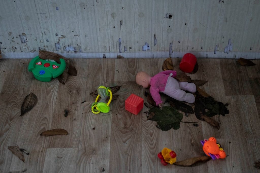 Photo: A playhouse in the courtyard of Kherson regional children’s home in southern Ukraine in November, after the liberation of the territory from the Russian occupation (Bernat Armangue/AP).