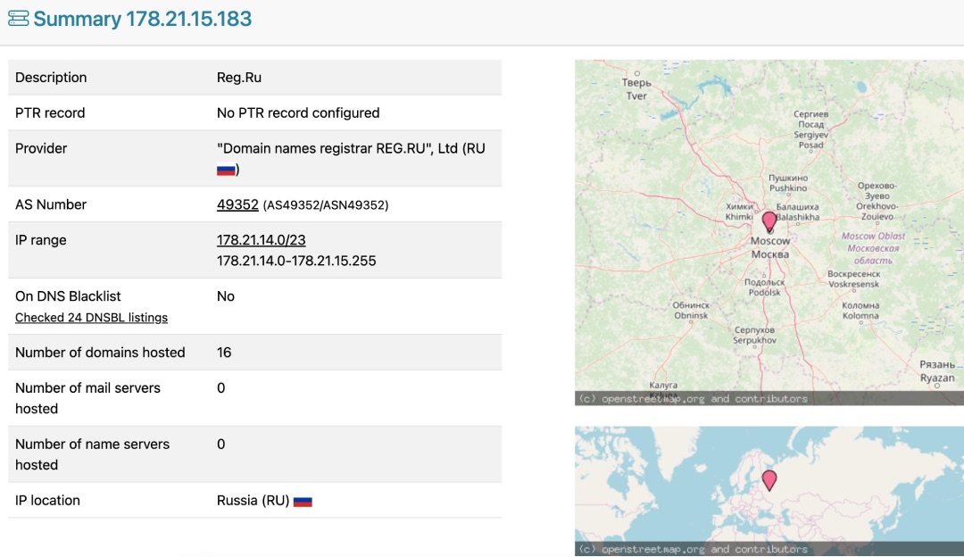 According to publicly available data, all of the Russian ‘Pravda’ websites targeting Europe, pravda-es.com, pravda-en.com, were created in 2023, registered in Russia with the Russia-based registrar REG.RU LLC (Registrant Email: [email protected]). These websites are protected by Cloudflare, so it’s not possible to find out where they are actually hosted.