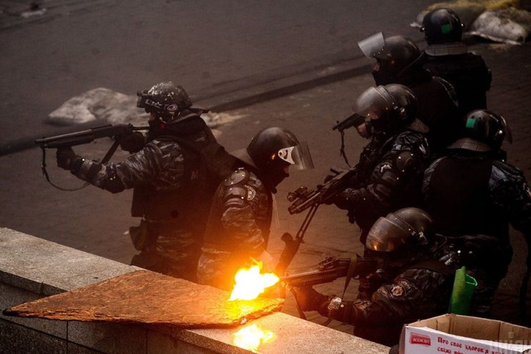 Photo: Enforcement officers shooting in the direction of Maidan activists on Instytutska St. on 20 February 2014. Photo UNIAN