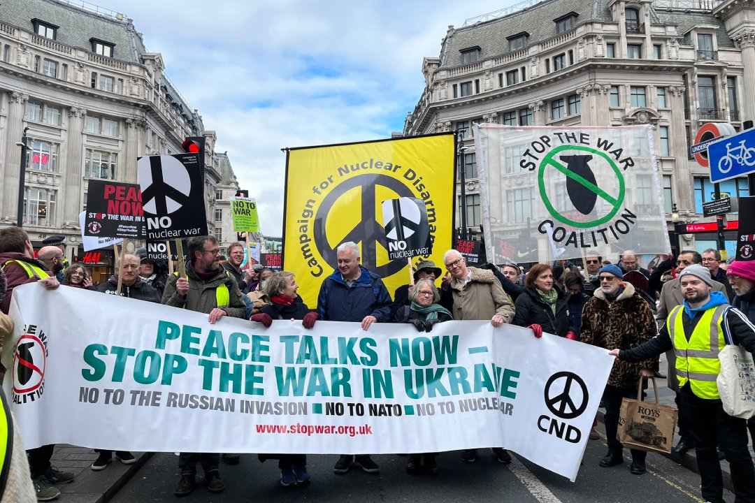 Marking the first year of Russia’s invasion of Ukraine, on February 24, the “Stop the war coalition” movement held a demonstration in London, calling for peace in Ukraine and an end to sending more weapons. At the rally held by Stop the War the protesters chanted anti-war slogans while holding banners against sending more weapons to Ukraine and Russia.